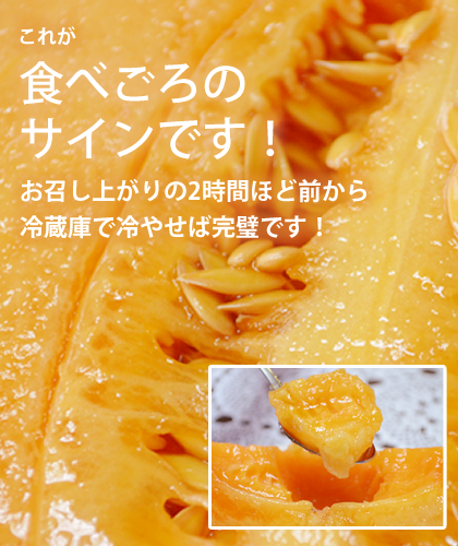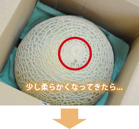 箱には食べ頃の日付が入っているので、必ず守ってください。届いたら常温に置き、食べる2時間ほど前に冷蔵庫に入れるのがおすすめ。さらに見分ける方法は、おしりの丸い部分を押して弾力を感じたら食べ頃です。